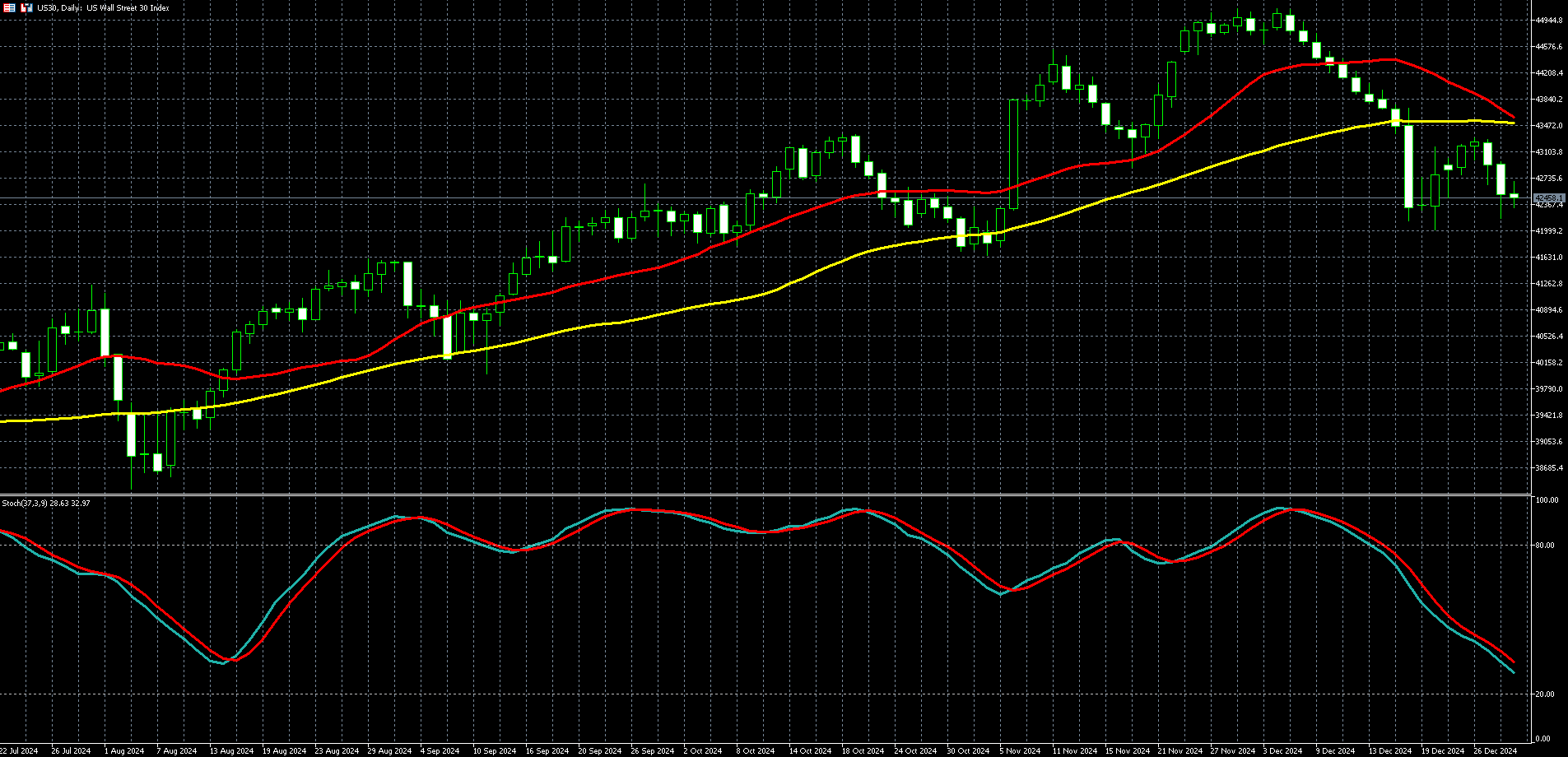 在经历一年的交易繁荣,2024 年封关日,随着美债殖利率上升,市场获利了结情绪影响,美股主指周二 (31 日) 回吐早盘涨幅后收低。标普和那指连续第四个交易日收黑,市值缩水逾兆美元,创 1966 年以来最长年终下跌天数。