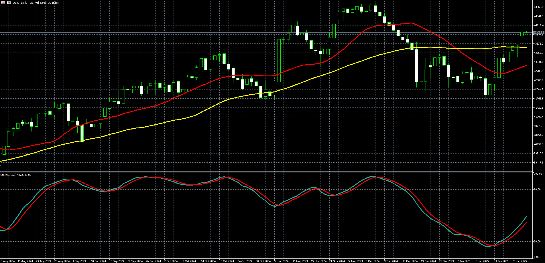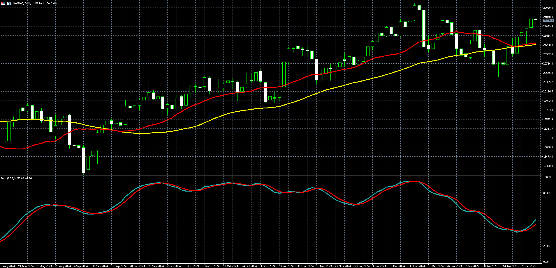 川普就职第二天宣布规模5,000 亿美元的AI 基建计画后,资金涌向AI 概念股,美股周三(22 日) 连续第三个交易日攀升,道琼指数上涨0.24%、标普500上涨0.48%、那斯达克100 指数上上涨0.99%。