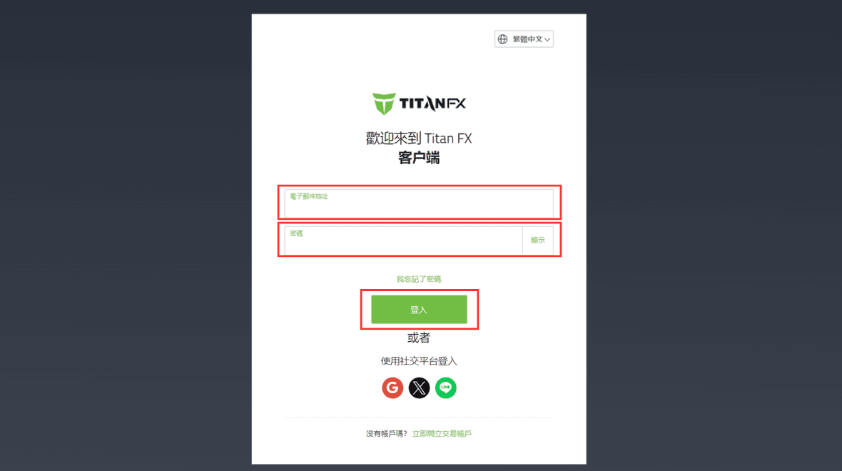 开启浏览器,造访Titan FX官方客户端页面,输入注册邮件地址和登入密码。