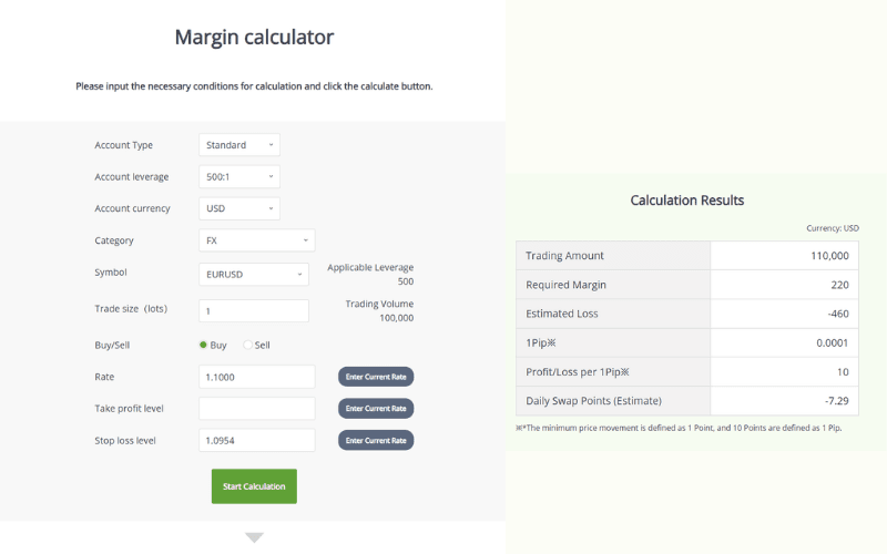 Titan FX provides a "Forex/CFD Margin Calculator" that automatically calculates the margin level. Simply select the trading instrument, input the price, lot size, and leverage, to confirm the required margin and trading amount. Anyone can easily use it.