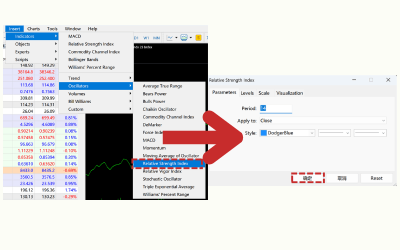 Here are the methods for setting up oscillators on MT4 (MetaTrader 4) and MT5 (MetaTrader 5).
