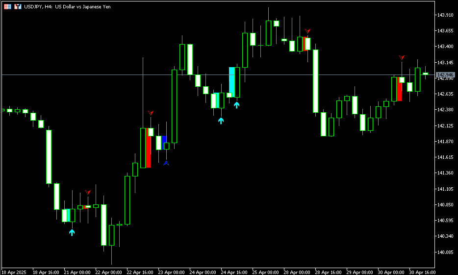 This indicator displays arrows on the chart when a Harami or Engulfing pattern is detected, making the occurrence easy to recognize.