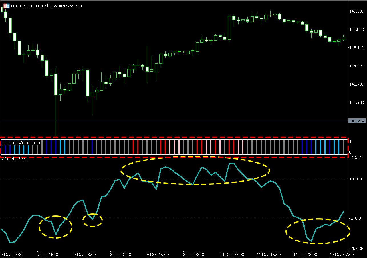 【Example showing the state of CCI (Note: CCI itself is not displayed by this indicator.)】