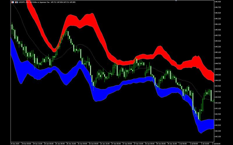 Bollinger Bands are an indicator that visualizes the range of market fluctuations using the standard deviation (σ) of prices.