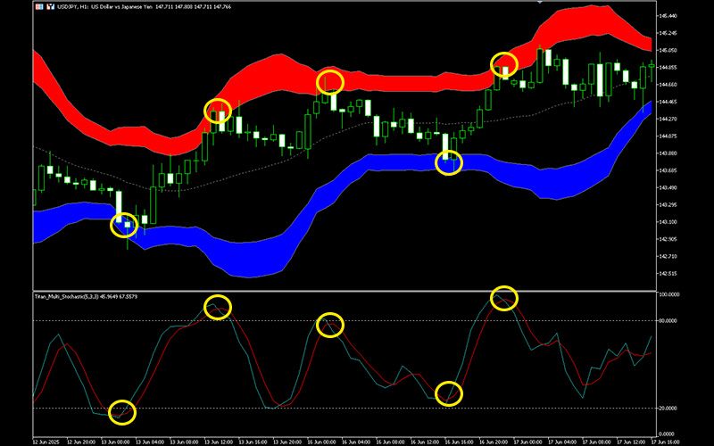 If the price frequently stays in this area, reaching +2σ to +3σ during an uptrend may indicate a short-term overbought (peak) condition, while reaching -2σ to -3σ during a downtrend may indicate a short-term oversold (bottom) condition.