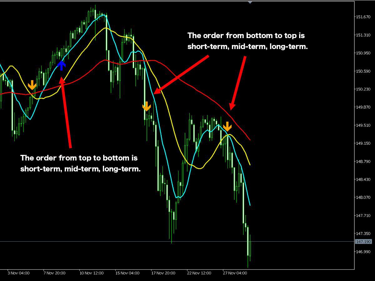 【Example of Perfect Order Occurrence (image with moving averages displayed based on settings)】