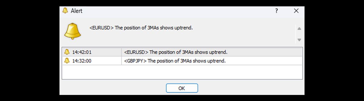 If the alert setting is turned on, the indicator will notify you with sound and pop-ups, allowing you to be aware of a perfect order occurrence without constantly watching the screen.
