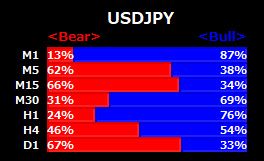 This indicator overlays bar graphs at a specified position to show the status of each timeframe.