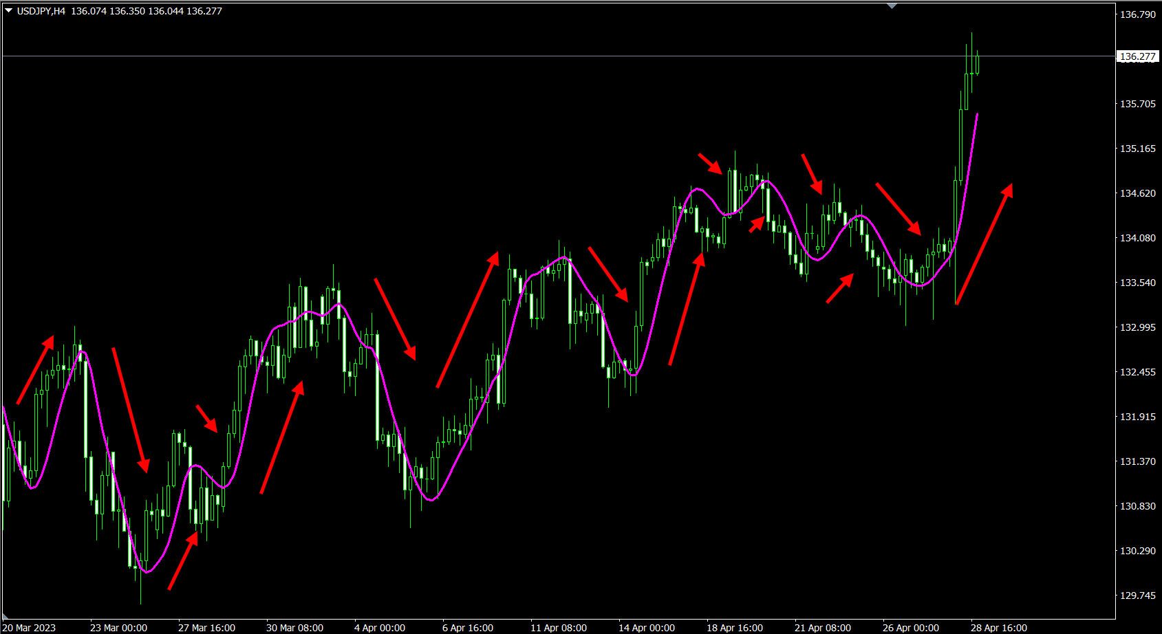 【Example of displaying the Hull Moving Average (HMA) with a period of 20】