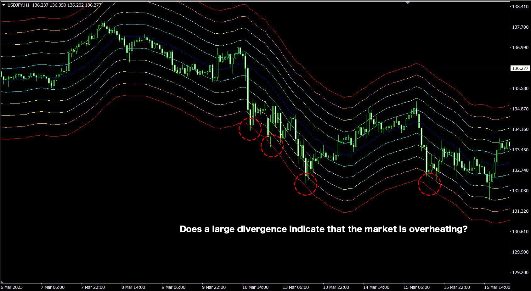 Analysis Example 3: Analyzing market overheat A large deviation from the moving average may indicate that the market is overheating, which could lead to a potential reversal in the short term.