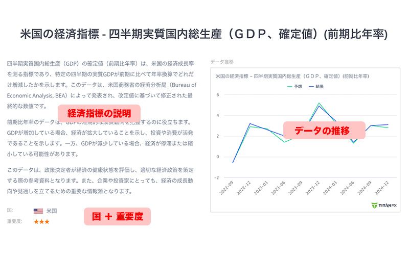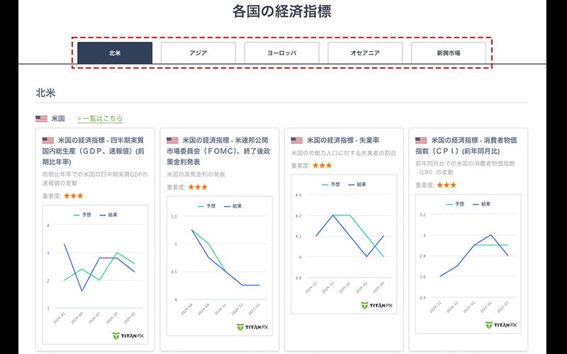 Titan FXでは、米国、欧州、アジアなど主要経済圏をカバーする世界経済指標を提供し、トレーダーがリアルタイムで経済データを取得し、最新の市場変化を素早く正確に把握できるようサポートしています。