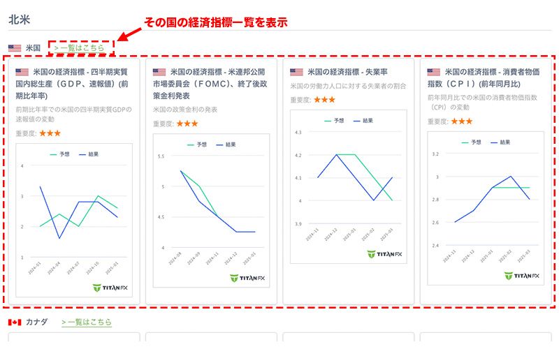 さらに、その国の全ての経済指標を表示するには [一覧はこちら] をクリックしてください。