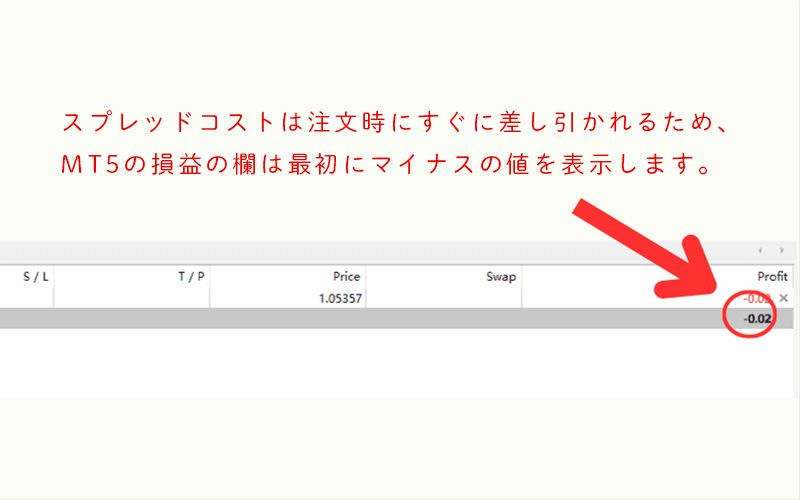スプレッドは、取引を開始した瞬間に即時で発生します。