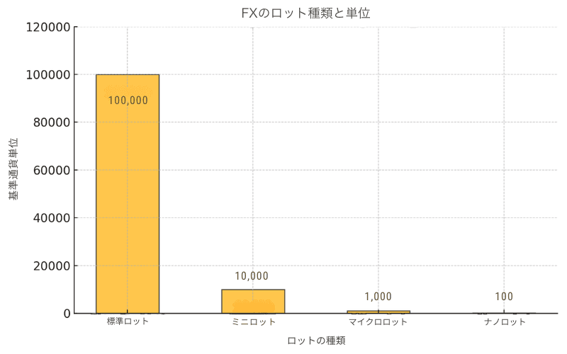 ロットサイズは、取引コスト、損益、リスク管理の計算における基盤です。代表的なロットの種類は以下の通りです: