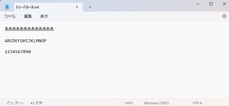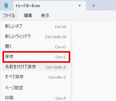 メモ帳の「ファイル」→「保存」を選択し、保存すると、チャート上にテキストが表示されます。