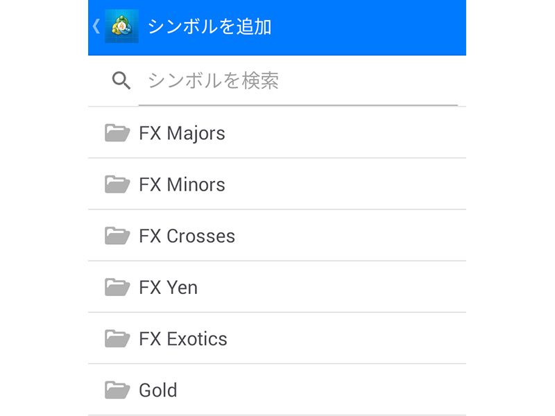 銘柄の追加画面では、検索窓に銘柄名を入力し、表示される銘柄名をタップするか、検索窓の下の銘柄カテゴリを指定し、表示したい銘柄をタップすると銘柄を追加することができます。