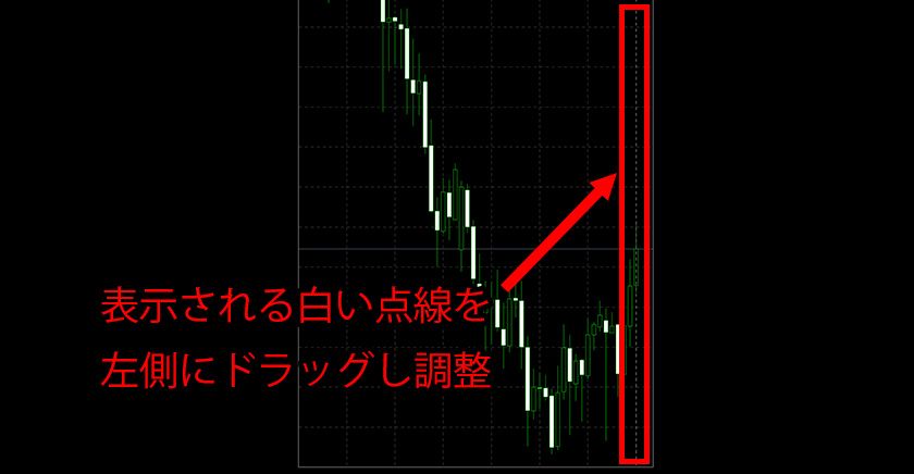 iOS版のMT4で分析するとき、右側にスペースが欲しいという場合は、チャートの右側に任意の大きさのスペースを空けることができます。