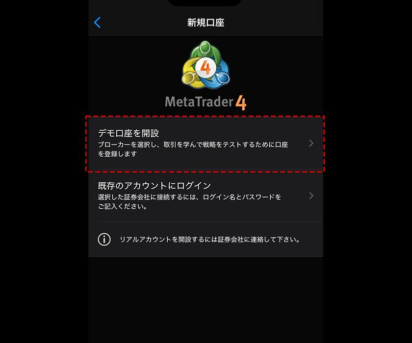 MT4用のデモ口座はMT4から以下の方法で簡単に申請することができます。
