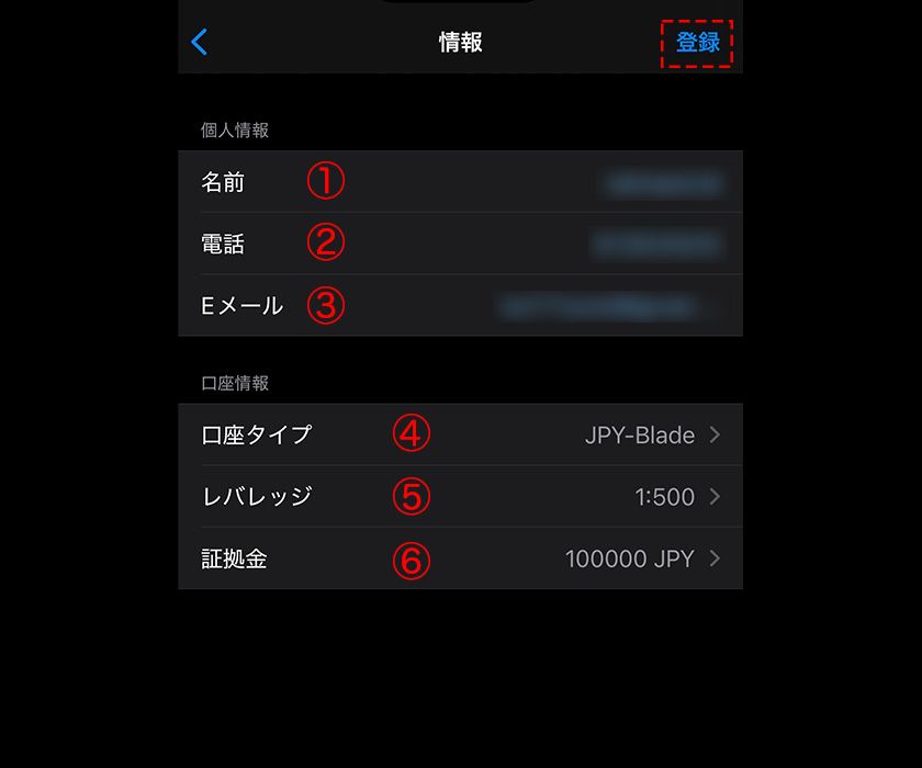 ④口座タイプ(通貨と口座の種類)(口座の種類はSDがスタンダード口座、Bladeがブレード口座、Microがマイクロ口座)