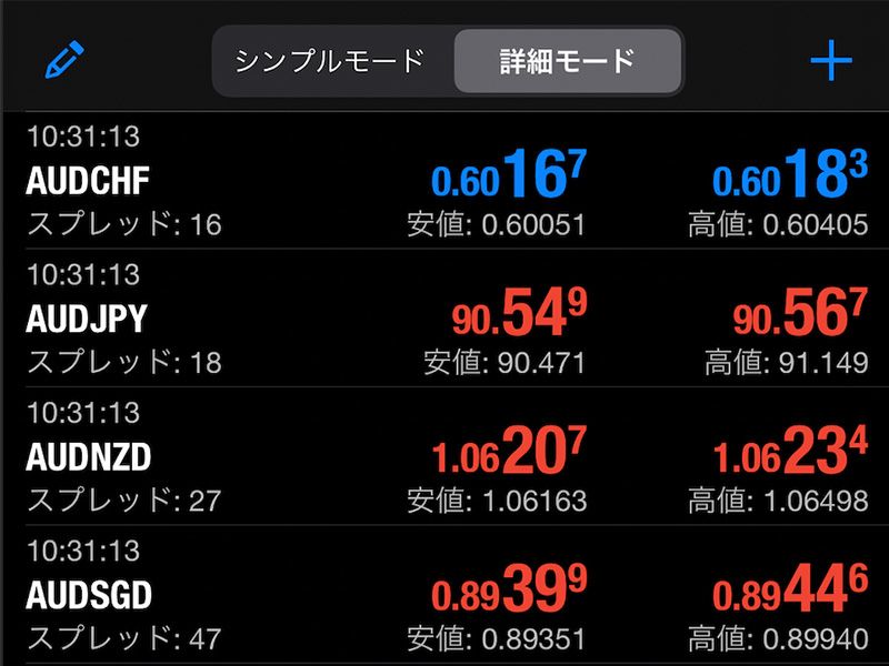 ポジションの変更や決済、注文の変更や取消は、基本的にこの画面から行います。
