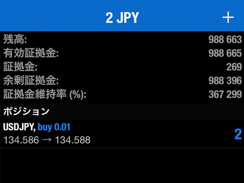 現在の口座の状態や保有中のポジション、注文中の指値・逆指値の状況を確認することができます。