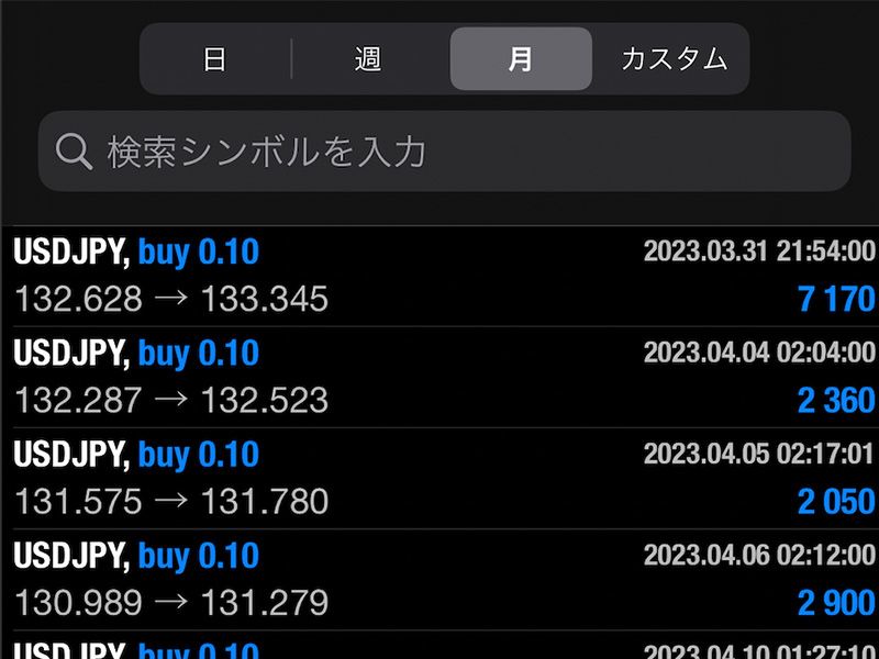 取引の履歴を確認する画面です。