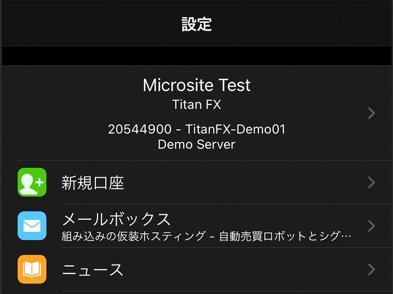 設定画面では、口座へのログインやチャートの設定等を行うことができます。