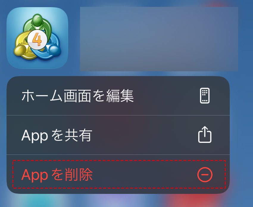 MetaTrader4のアイコンを長押しし、表示されるメニューからAppを削除を選択すると、アプリをアンインストールすることができます。