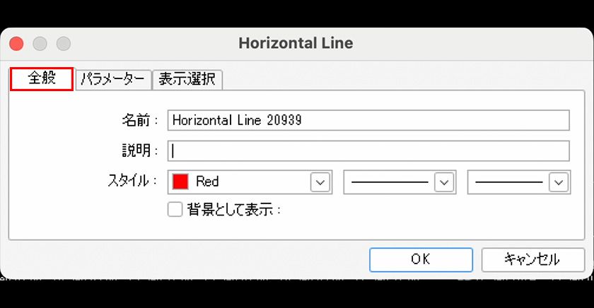 「全般」タブではラインの名前、説明、色、ラインの太さ、種類を指定できます。