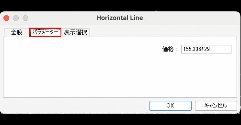 「パラメーター」タブでは水平線の位置を価格で指定できます。