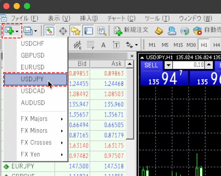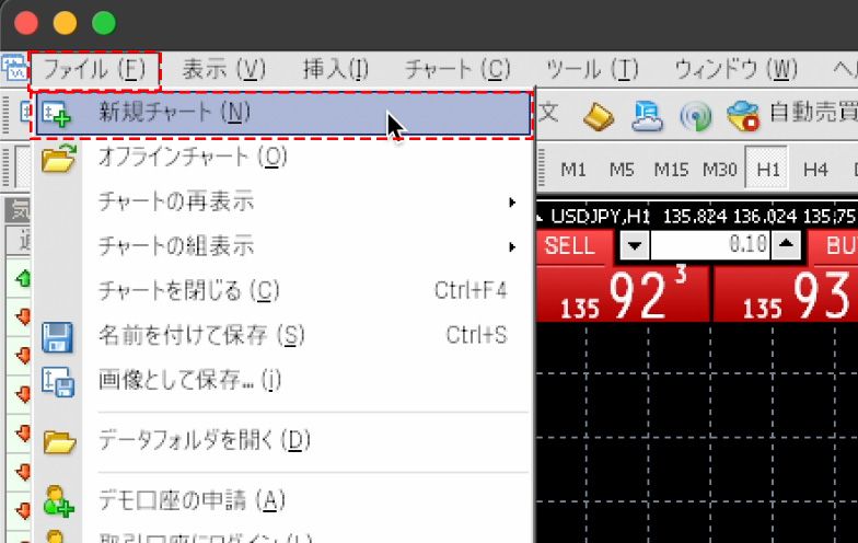 MT4(Mac版)の新規チャートの表示、再表示の方法 | Titan FX(タイタンFX)取引戦略研究所