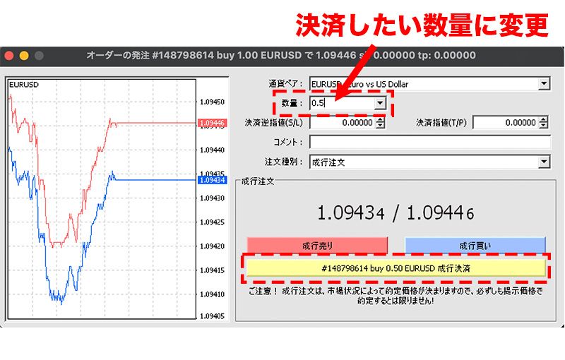 MT4では、保有中のポジションの一部を決済することもできます。