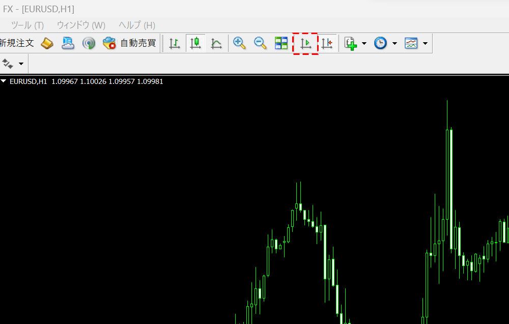 ツールバーのチャートのオートスクロールのアイコンをクリックすると、チャートのオートスクロール機能のオン・オフを切り替えることができます。