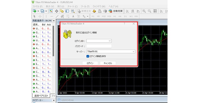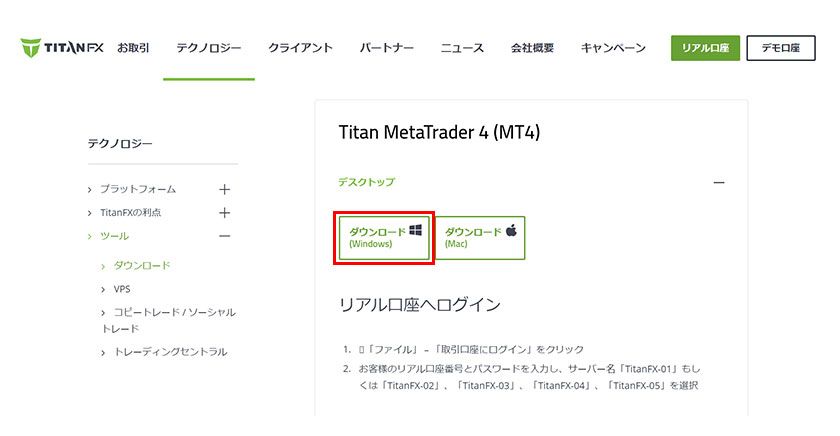 TItanFXのMT4のダウンロード、インストールおよびログインの方法をご案内いたします。