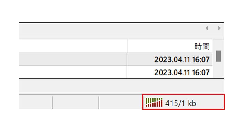 ログインが成功した場合は、MT4の左下にデータ通信量が表示されます。