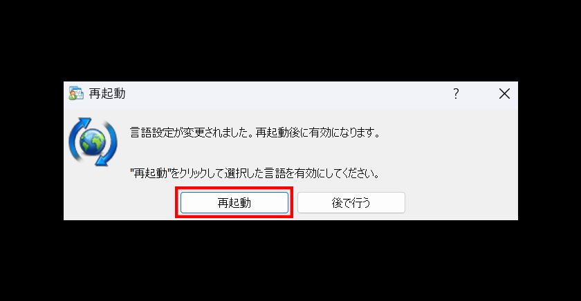 再起動が完了すると、言語の設定が切り替わります。