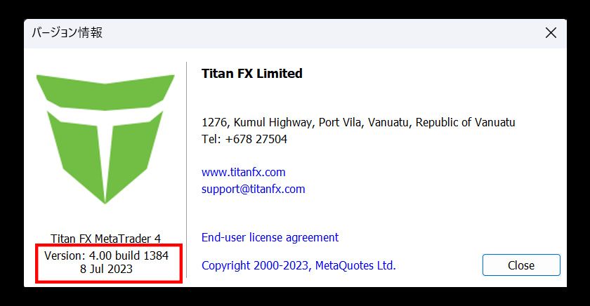 MT4には、バージョン(Version)という大きなバージョンの区分けに加え、ビルド(build)という数字でバージョンを管理しています。