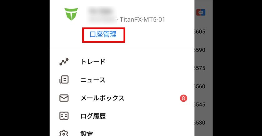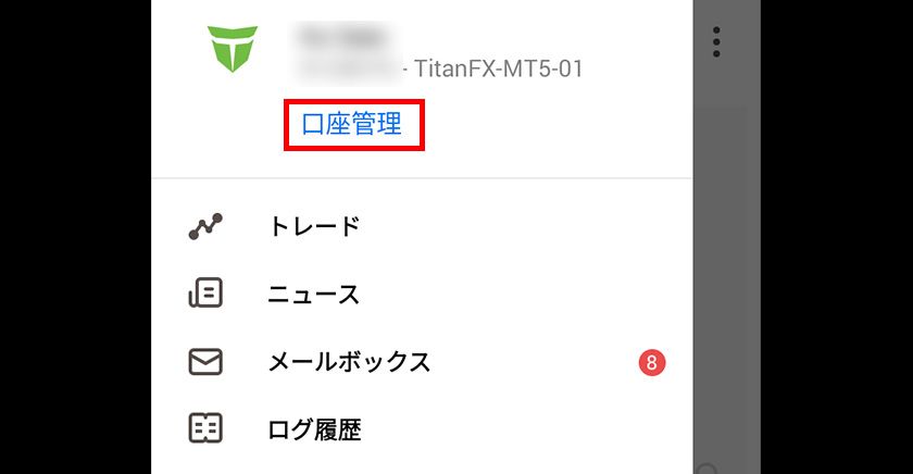 画面左上のメニューから「口座管理」をタップします。