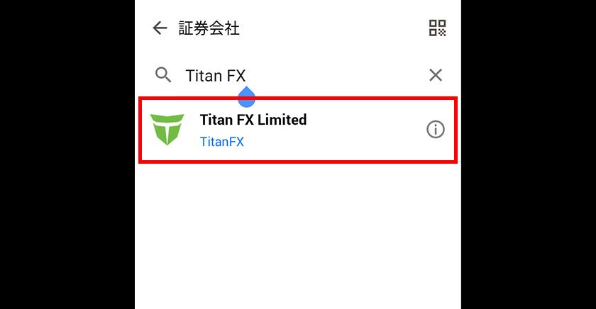 「証券会社を検索」の欄に「Titan FX」と入力し、表示されるブローカーから「Titan FX Limited」を選択します。