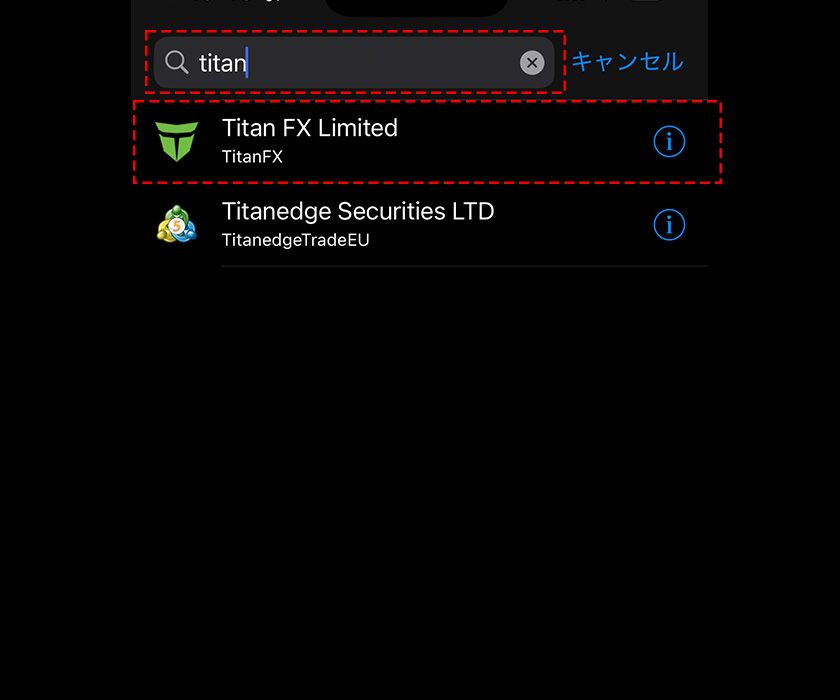 検索窓に「titan」と入力し、表示される「Titan FX Limited」をタップします。