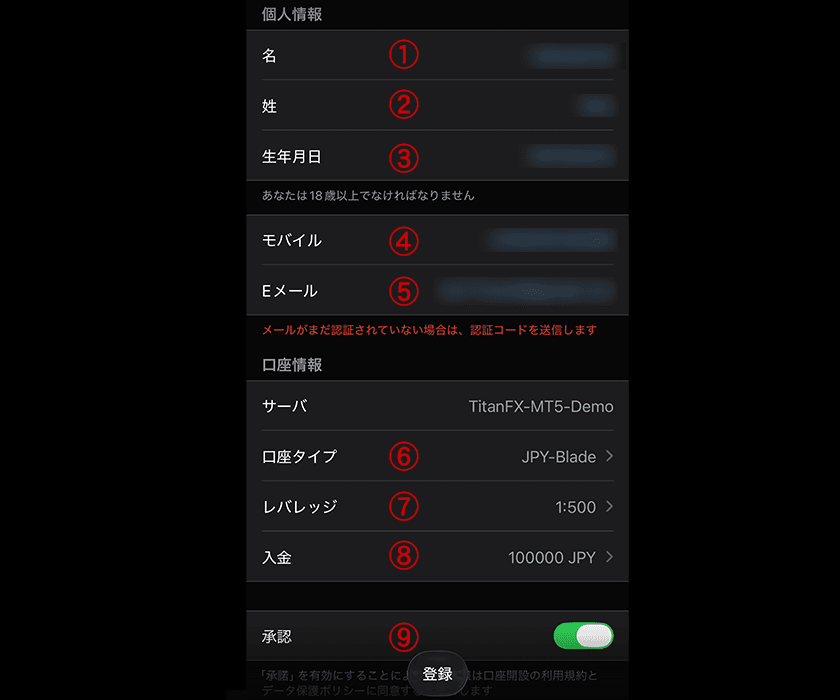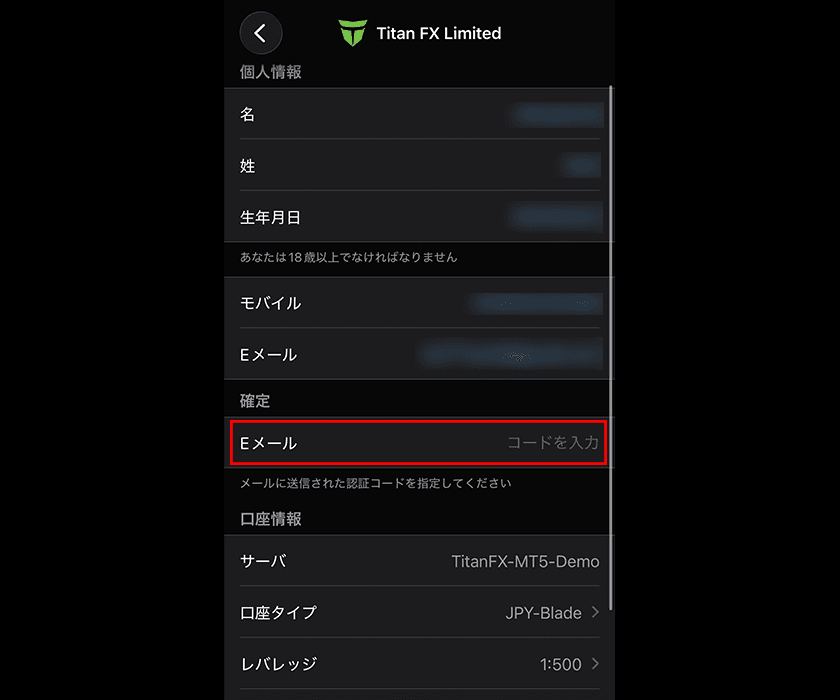 MT5に戻り、認証コードを「Eメール」の部分に入力します。