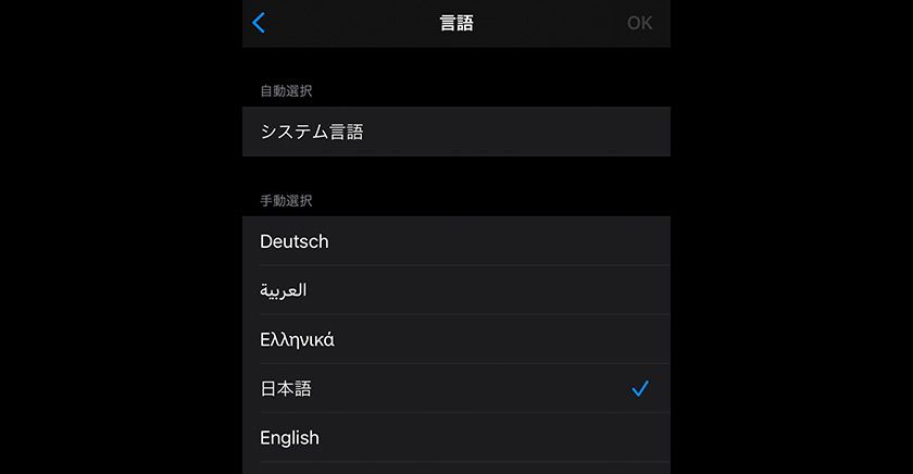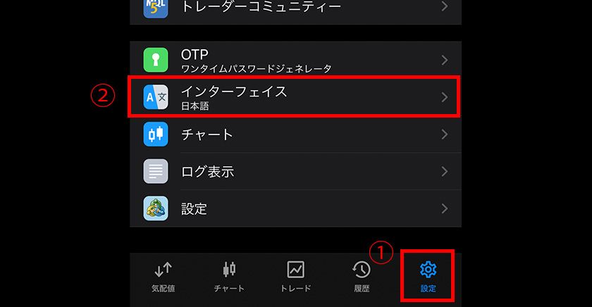 MT5のiOS版では、言語の設定を簡単に切り替えることができます。