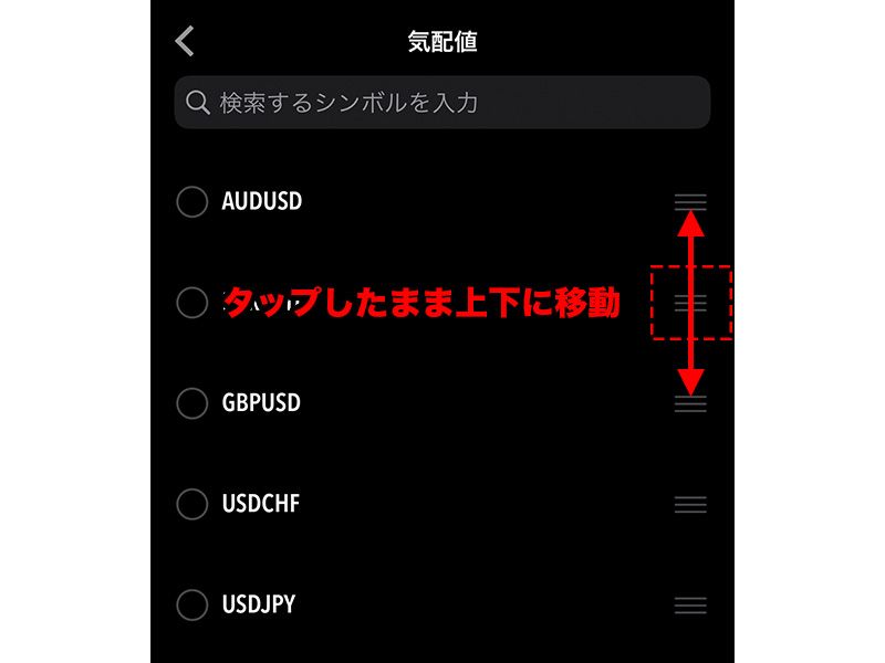 また、表示の順番は表示している項目の右のアイコンをタップしたまま上下に動かすと入れ替えることができます。