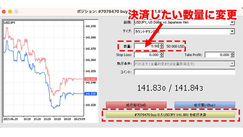 MT5では、保有中のポジションの一部を決済することもできます。