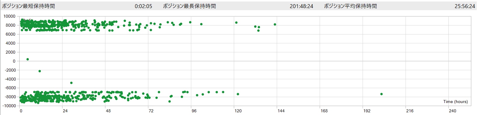 ポジションの保有時間と損益の分布をグラフで確認できます。