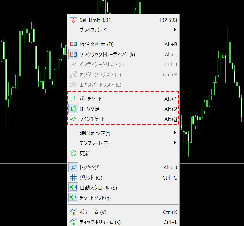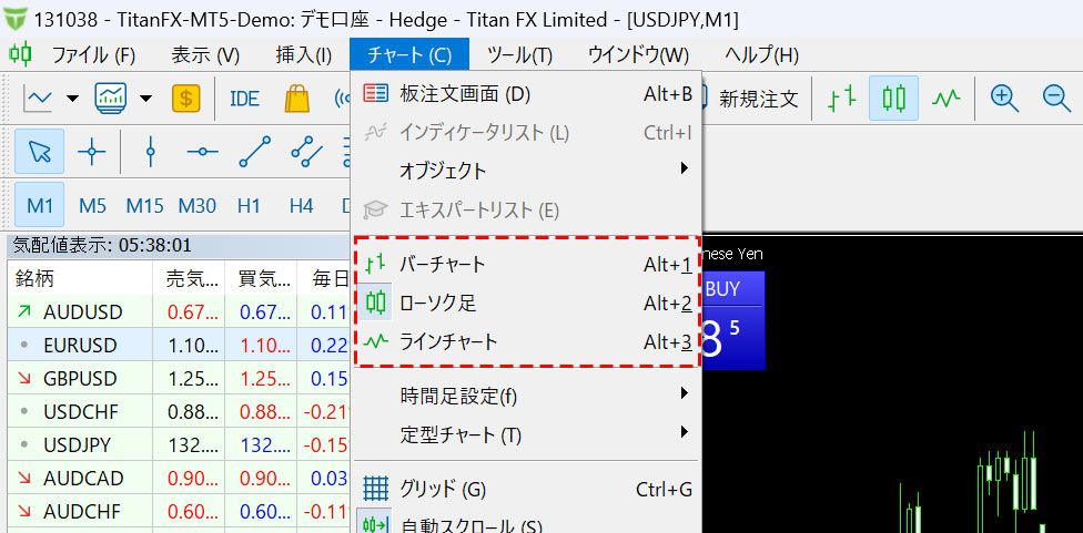 MT5(Windows版)のチャートの種類の変更方法 | Titan FX(タイタンFX)取引戦略研究所