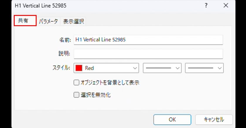 「共有」タブではラインの名前、説明、色、ラインの太さ、種類を指定できます。
