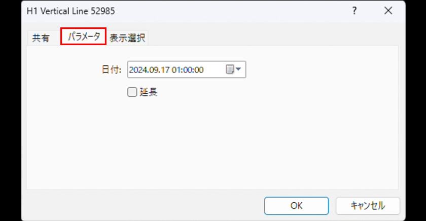 「パラメータ」タブでは垂直線の位置を時間で指定できます。