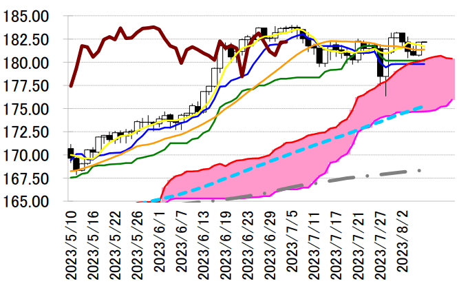 181 円前半の 21 日移動平均線を上抜けると 182 円台まで上げ