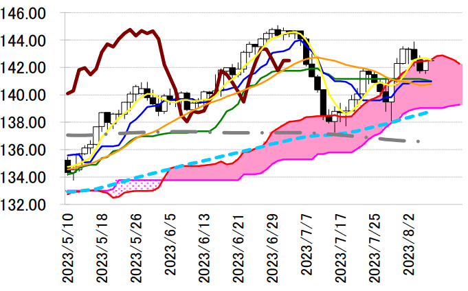 円から明日には 142.80 円台まで上昇する見込み。 本日はその雲の上限を巡る攻防か。明日以降の上昇を見込